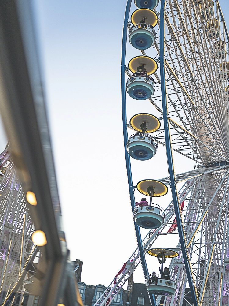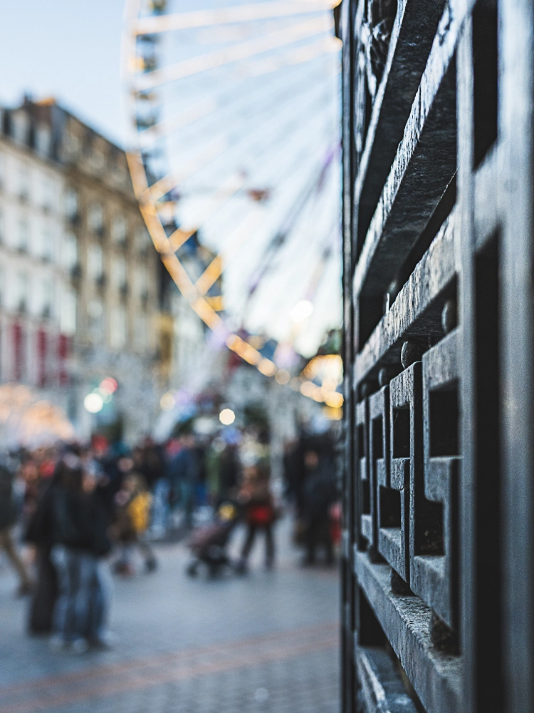 Avec un zoom, on cadre en tournant une bague. Avec une focale fixe, on photographie avec ses pieds. À Lille, coincé entre les chalets du marché de Noël, j’ai dû anticiper chaque image. À Gand, face aux grandes roues et aux canaux, j’ai appris à attendre le bon angle, la bonne distance, le bon moment.